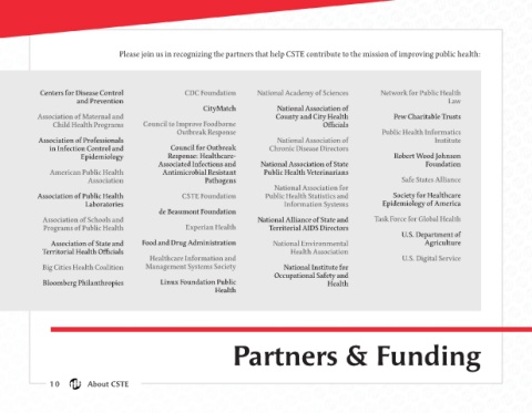 Please join us in recognizing the partners that help CSTE contribute to the mission of improving public health: