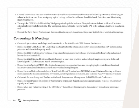 • Convened 190 sessions, workshops, and roundtables at the 2021 Virtual CSTE Annual Conference.