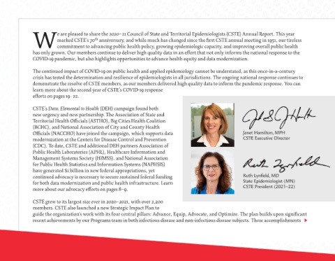e are pleased to share the 2020–21 Council of State and Territorial Epidemiologists (CSTE) Annual Report. This year