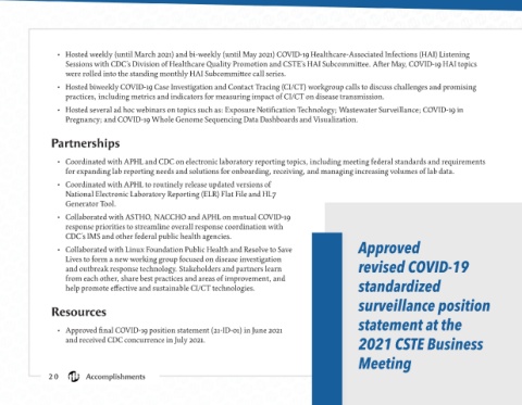 • Collaborated with ASTHO, NACCHO and APHL on mutual COVID-19