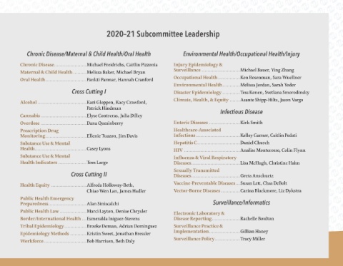 Health Equity ........................Alfreda Holloway-Beth, Vaccine-Preventable Diseases ...Susan Lett, Chas DeBolt
